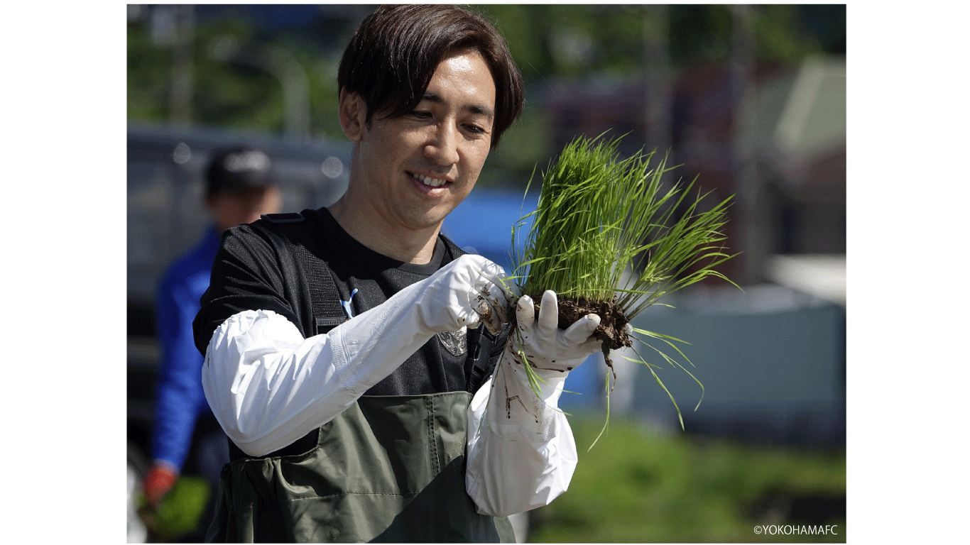 横浜市産「横浜FC応援米」の田植え・収穫体験を通じ、都市農業への理解を深めます。当日は横浜FC C.R.Oの内田智也氏も参加し、収穫後には「横浜FC応援米2kg」をお渡しします 。