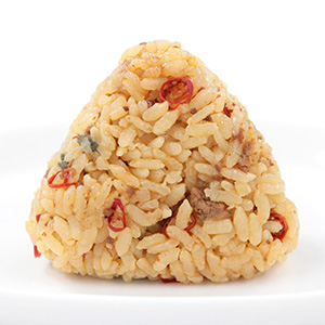 醤油をベースに、にんにく・唐辛子・チキンエキス等を炊き込み、台湾丼を再現したおにぎりです。